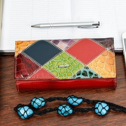 Kolorowy skórzany portfel damski patchwork na bigiel - Julia Rososo G89