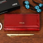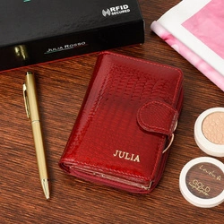 Skórzany portfel damski z zapięciem lakierowany czerwony RFID - Julia Rosso F59