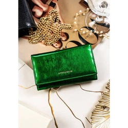 Skórzany portfel damski lakierowany w zielonym kolorze - Peterson 76115-SH