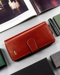 Duży skórzany portfel damski na zatrzask w orintacji pionowej czerwony — Peterson RD-42-GCL