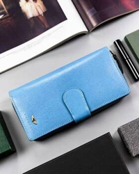 Duży skórzany portfel damski na zamek i zatrzask niebieski — Peterson 2519-BO
