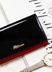 Skórzany lakierowany portfel damski w kolorze czarno-czerwonym - Peterson 1N-445