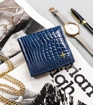 Elegancki mały portfel damski na bigiel i zatrzask granatowy — Milano Design SF-1814-JM