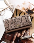 Duży skórzany portfel damski z wężowym wzorem szary — Peterson SM-467