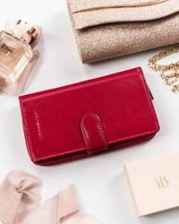 Duży skórzany portfel damski na zatrzask w orintacji pionowej czerwony — Peterson RD-42-GCL