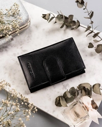 Skórzany portfel damski z zapięciem czarny — Rovicky R-RD-39-GCL