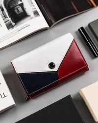 Skórzany portfel damski z zapięciem granatowy w środku kolorowy - Barberini's D-8346-4