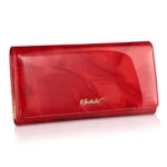 Skórzany portfel damski lakierowany na zamek ze smyczką czerwony - Betlewski 1010804-RED