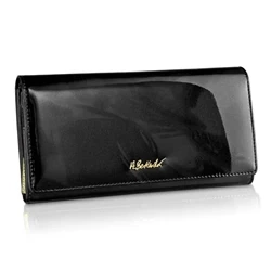 Duży skórzany portfel damski na bigiel lakierowany czarny - Betlewski 1010825-BL