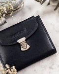 Skórzany portfel damski mały z zapięciem czarny RFID - Rovicky R-RD-41-GCL