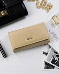 Duży skórzany portfel damski pikowany beżowy RFID - Rovicky R-RD-07-GCL-Q