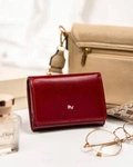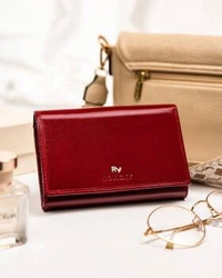 Mały skórzany portfel damski czerwony RFID - Rovicky R-RD41-GCL