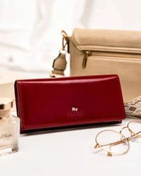 Duży skórzany portfel damski na karty czerwony RFID - Rovicky RV-1680133-BCA