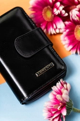 Skórzany lakierowany czarny duży portfel damski na zatrzask - 4U Cavaldi H27-1-SH9