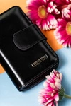 Duży skórzany lakierowany portfel damski czarny na zatrzask - 4U Cavaldi H22-1-SH9