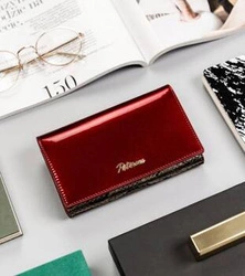 Skórzany lakierowany portfel damski czerwony skóra węża RFID - Peterson BS-466