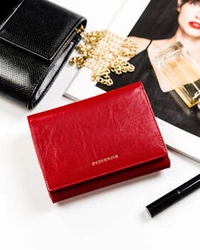 Skórzany czerwony portfel damski zamykany na zatrzask - Rovicky CPR-121-BAR