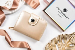 Mały złoty portfel damski z zapięciem ze skóry ekologicznej - Peterson 014-HRH