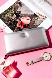 Elegancki duży portfel damski na zamek srebrny - Rovicky R-PRK-01-HRH
