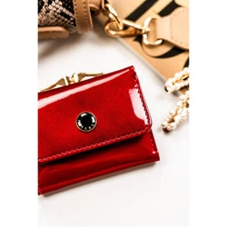 Czerwony portfel damski z lakierowanej skóry naturalnej na zatrzask - Peterson 76115-SH