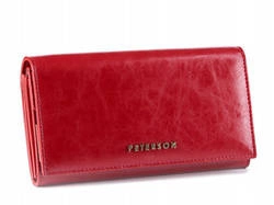 Skórzany portfel damski z klapką czerwony — Peterson PTN PL-411