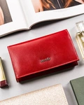 Skórzany portfel damski na zatrzask podwójny czerwony Peterson [D] PTN CR-602-0738 RED