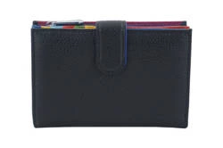 Skórzany portfel damski z zapięciem czarny w środku kolorowy - Barberini's D-8346-1