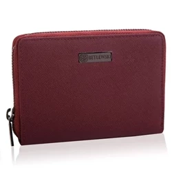 Skórzany portfel damski lakierowany na zamek ze smyczką czerwony - Betlewski 1010804-RED
