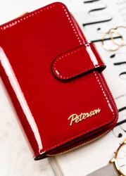 Skórzany portfel damski na zatrzask i suwak czerwony - Peterson RD-46-GCL