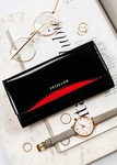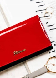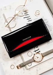 Skórzany portfel damski w kolorze czarno-czerwonym lakierowany - Peterson 1N-411
