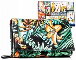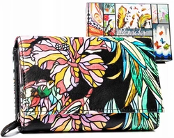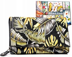 Kolorowy skórzany portfel damski na zatrzask - Rovicky R-N22-ART