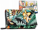 Duży skórzany portfel damski na zatrzask kolorowy - Rovicky R-N22-ART