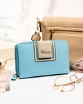 Skórzany portfel damski na zatrzask i suwak błękitny - Peterson KA-28