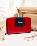 Skórzany portfel damski na zatrzask i suwak czerwony - Peterson KA-27