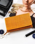 Skórzany portfel damski zamykany na zatrzask żółty - Rovicky R-613-DDW