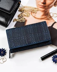 Skórzany portfel damski zamykany na zatrzask granatowy - Rovicky R-613-DDW
