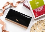 Mały portfel damski ze skóry ekologicznej czarno-czerwony lakierowany — Peterson 003-LAK