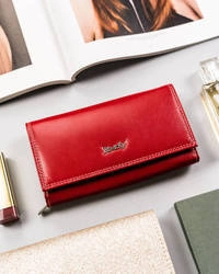 Skórzany portfel damski duży poziomy czerwony RFID Beltimore 043