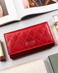 Skórzany portfel damski pikowany czerwony RFID — Rovicky R-RD-07-GCL-Q-3813 RE