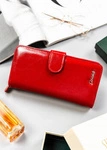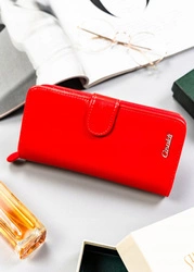 Skórzany portfel damski czerwony na zatrzask i suwak - Peterson KA-28