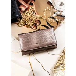 Złoty portfel damski skórzany z zapięciem podwójny - Peterson 1N-602