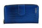 Skórzany portfel damski lakierowany na zamek niebieski croco - Barberini's 116-A-4