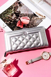 Pikowany duży portfel damski na zamek srebrny - Rovicky R-PRK-03-HRH