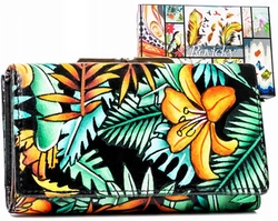 Duży skórzany portfel damski kolorowy z zapięciem - Rovicky R-N109-ART