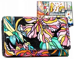 Duży skórzany portfel damski kolorowy pionowy - Rovicky R-N109-ART