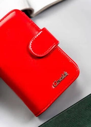 Mały czerwony portfel damski z błyszczącej skóry naturalnej - Lorenti 423229-CEK
