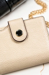 Mały portfel damski z zapięciem beżowy ze skóry ekologicznej - Peterson 014-LAK