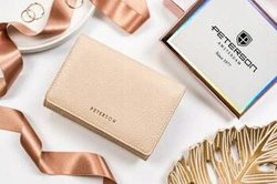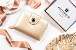 Mały złoty portfel damski z zapięciem ze skóry ekologicznej - Peterson 014-HRH