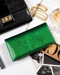 Skórzany portfel damski z zapięciem lakierowany zielony - Peterson 42329-SH