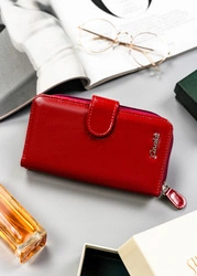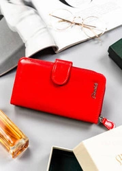 Skórzany portfel damski czerwony na zatrzask i suwak - Peterson KA-28